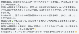 | DMZ愛妓峰平和生態公園 | 北朝鮮が見えるスターバックス | 体験レポートを見る ▶ |