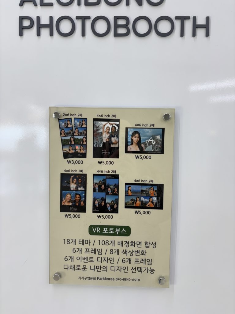 新しくプリクラ機が設置されました。なんと北朝鮮や軍人を背景にしたデザインもあり、値段は5,000ウォンです。横に記念メダル機器も設置されました。