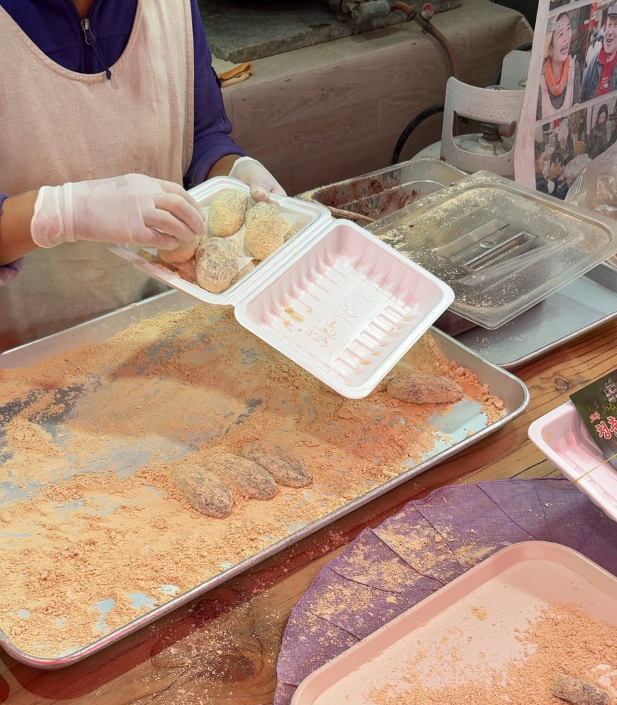 そんな犬餅は、きなこがまぶされた、薄皮のお餅にあんこが入っているデザートで、見た目はシンプルなのに1つ食べると止まらなくなります。私は10個買ったのですが1日で全て1人で食べました(笑)