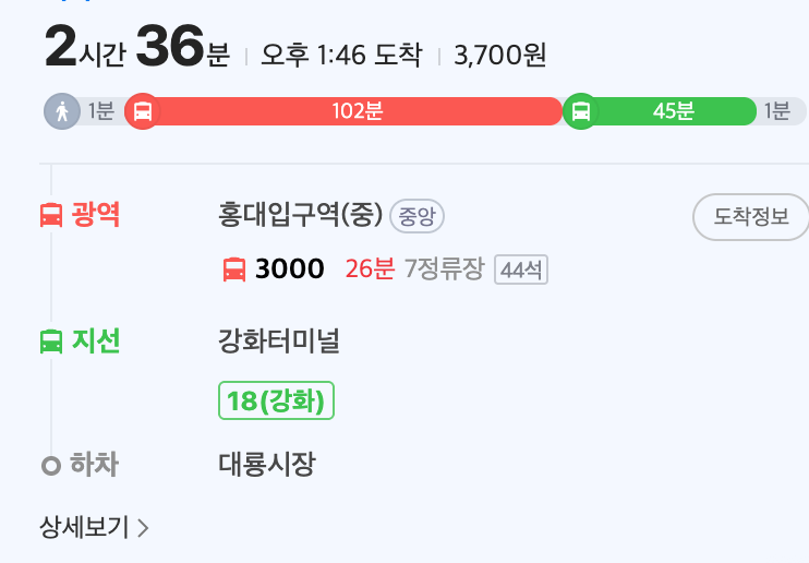 弘大入口駅 → 喬桐島 大龍市場まで 約2時間30分〜3時間